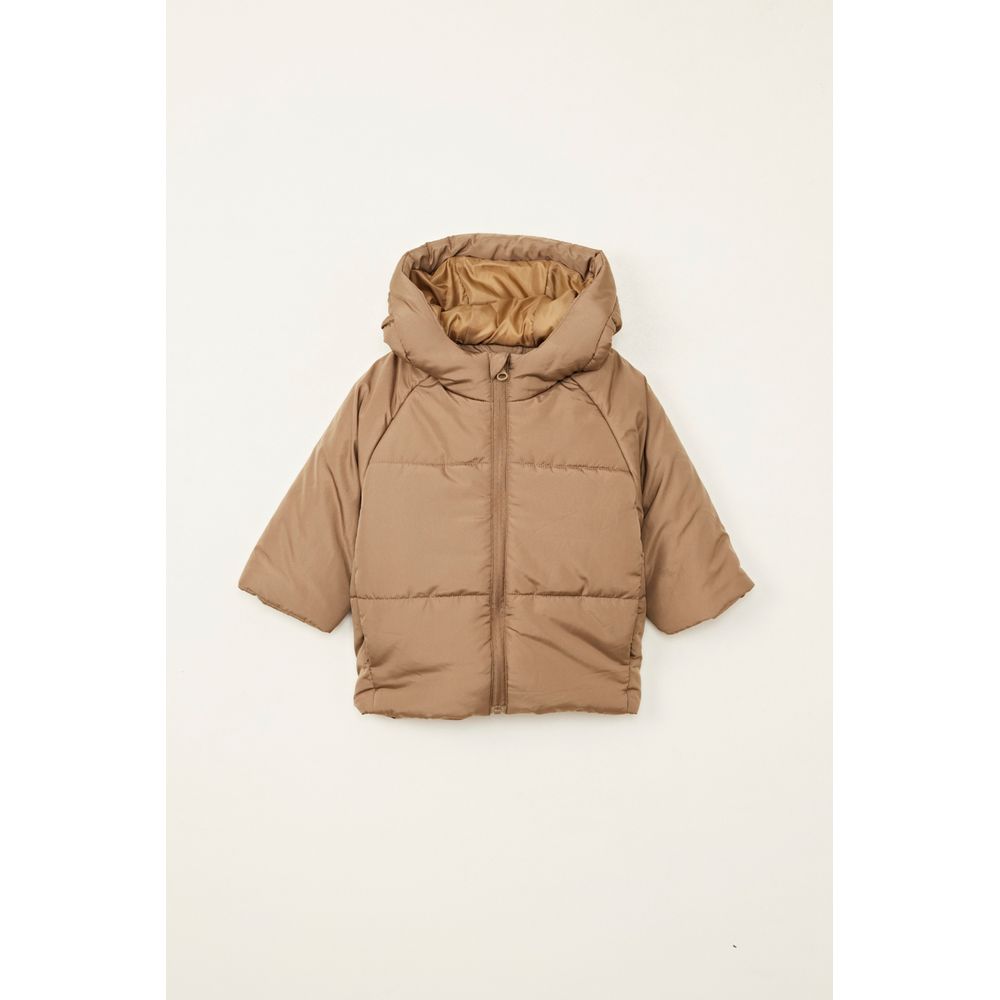 CAMPERA ABRIGO CAPITONEADA CAPUCHA BEIGE