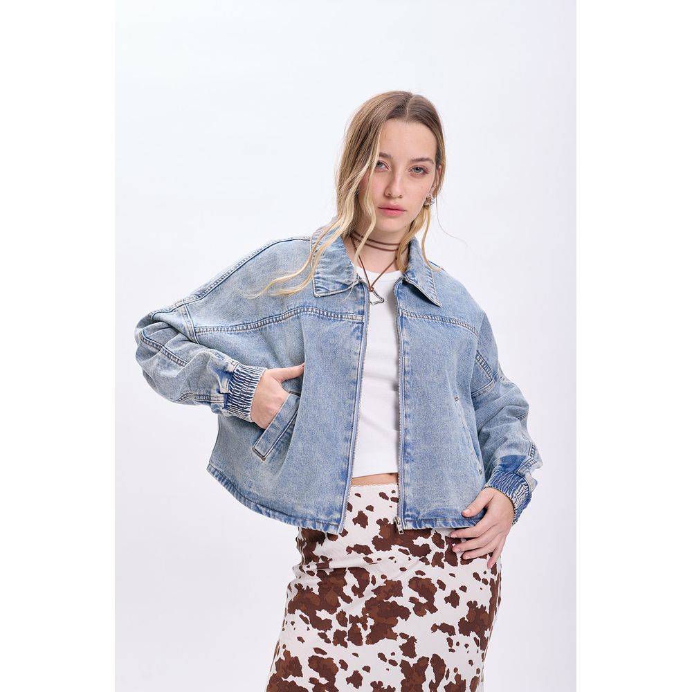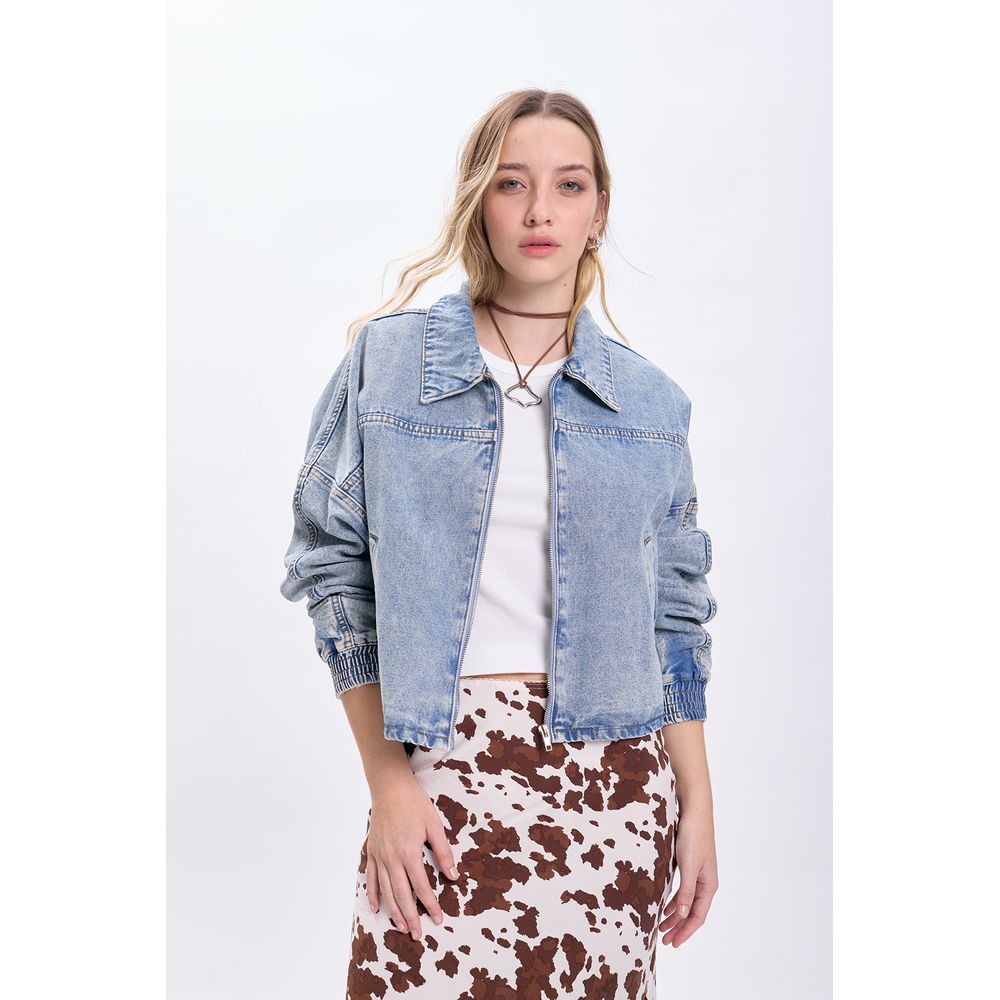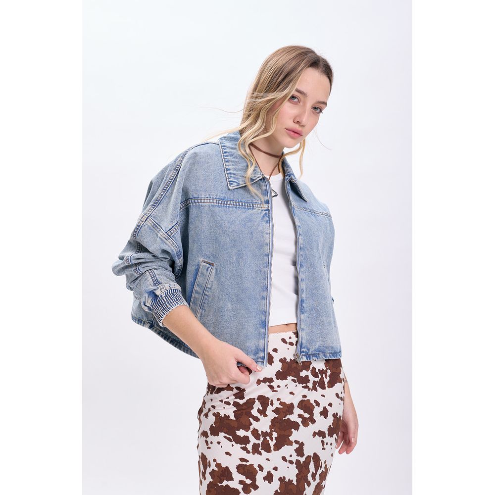 CAMPERA DE JEAN CROPPED CELESTE