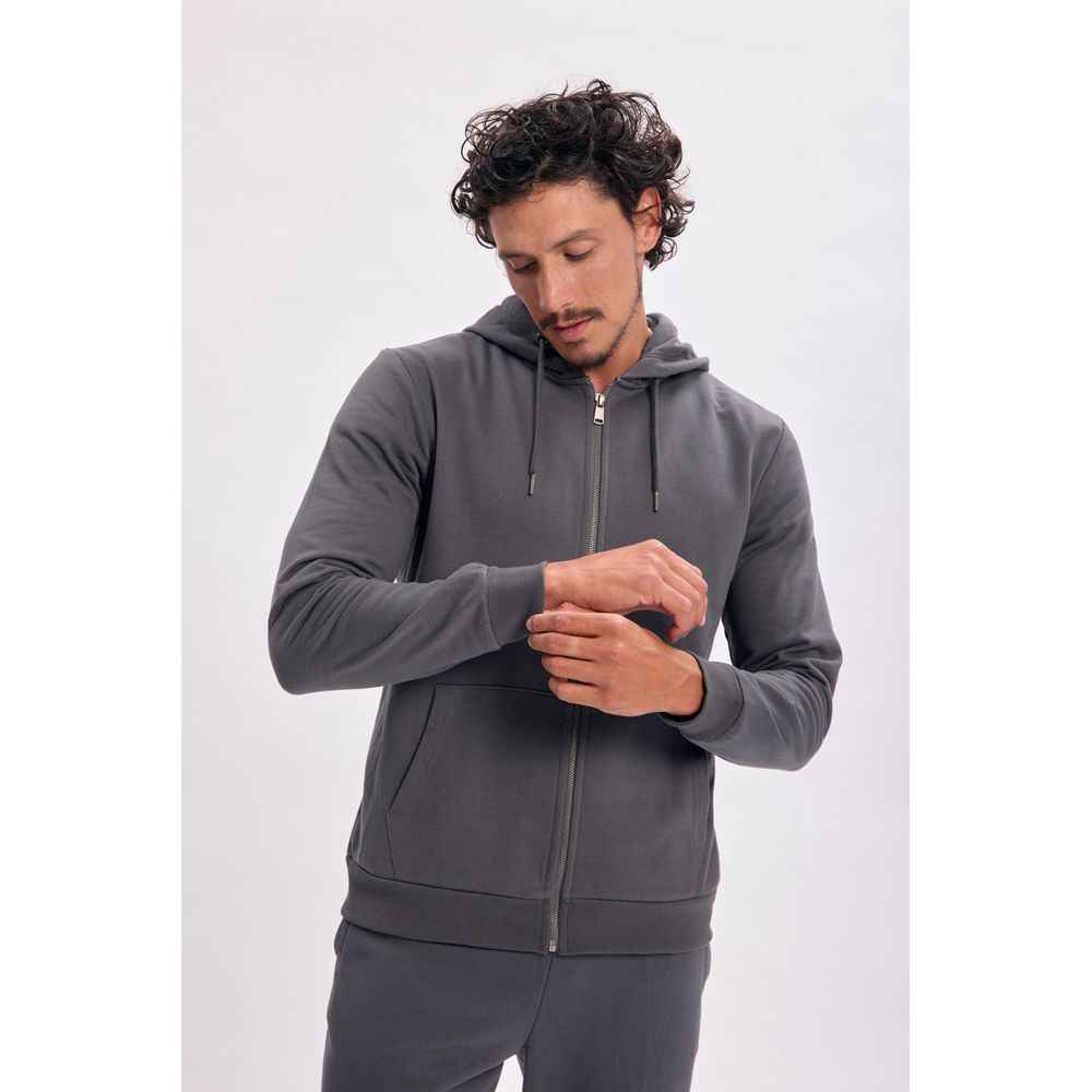 CHAQUETA DEPORTIVA CON CAPUCHA GRIS OSCURO