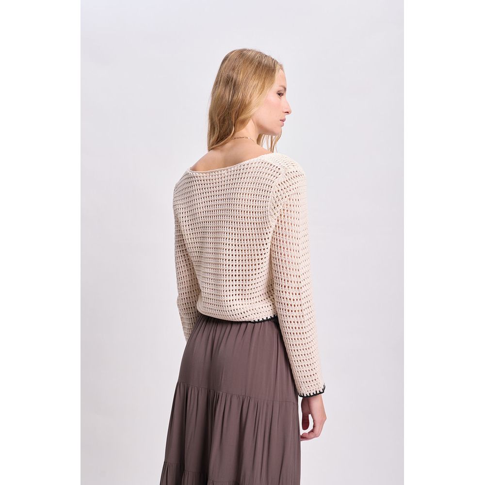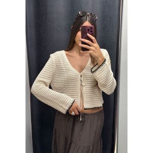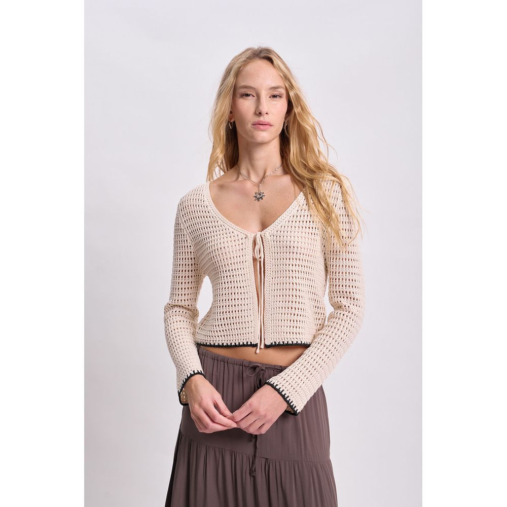 CARDIGAN PUNTO CROCHET AJUSTABLE CRUDO