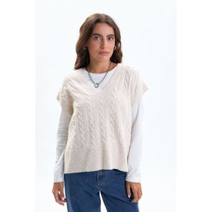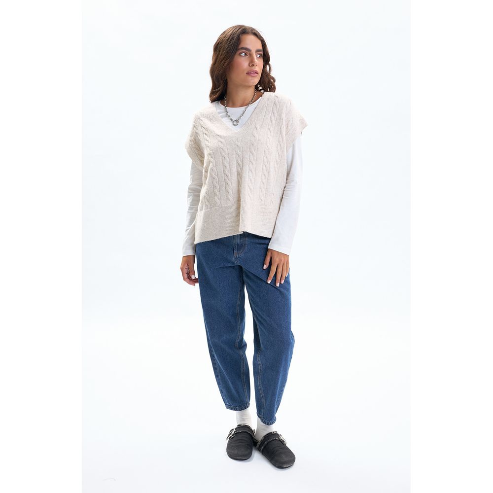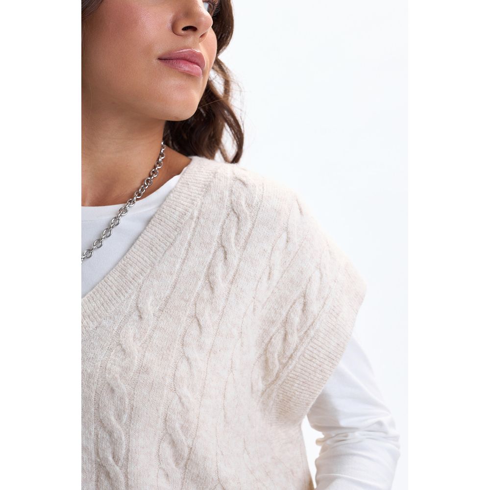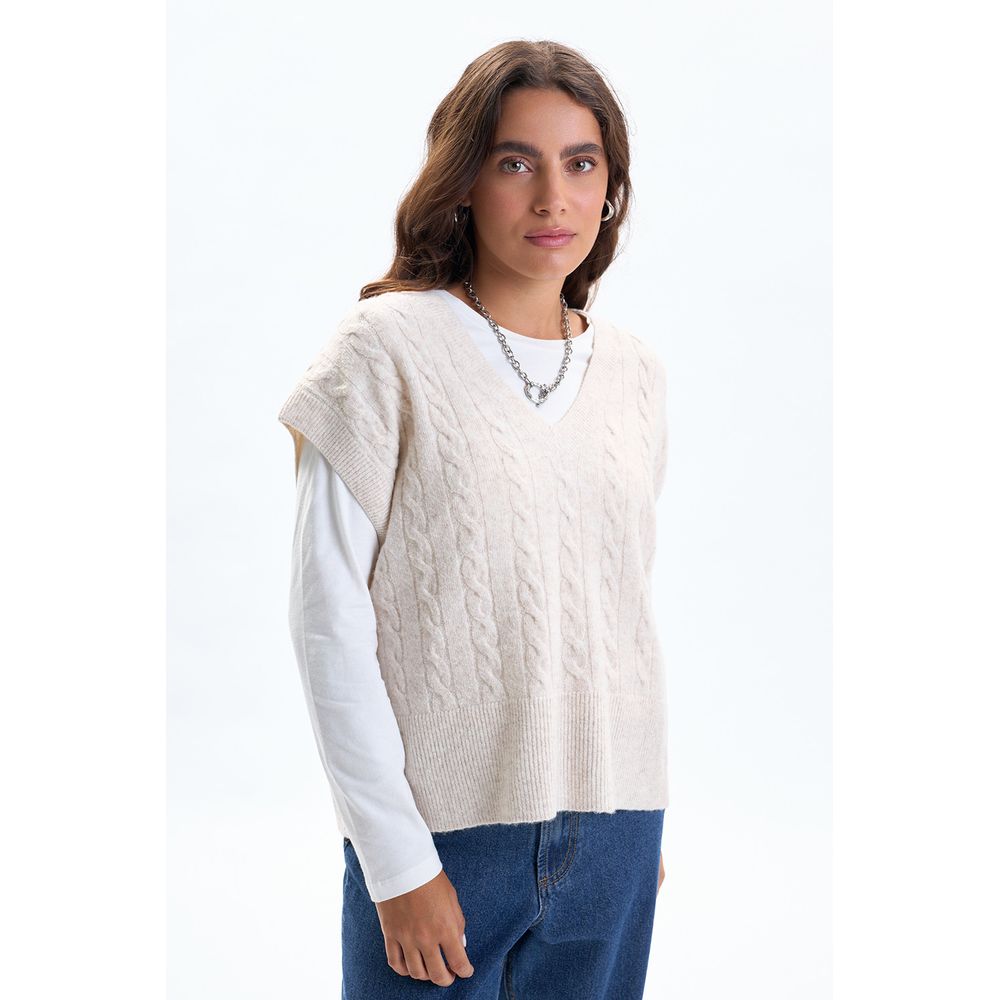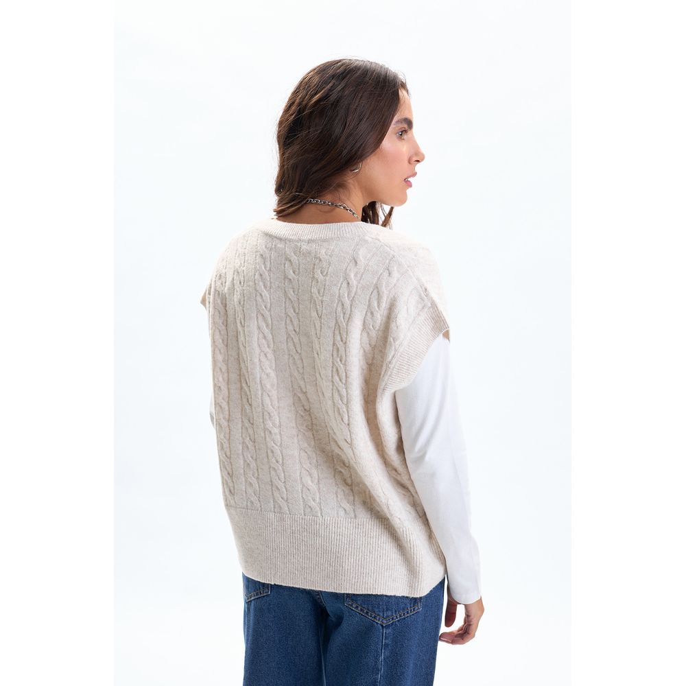 BUZO DE PUNTO FANTASIA CON ABERTURAS LATERALES CRUDO