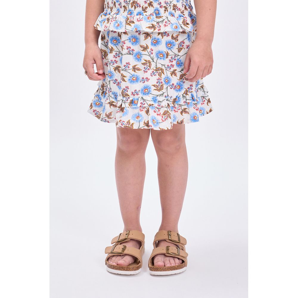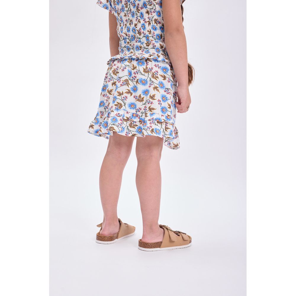 POLLERA CORTA VOLADOS ESTAMPA BOHO CRUDO