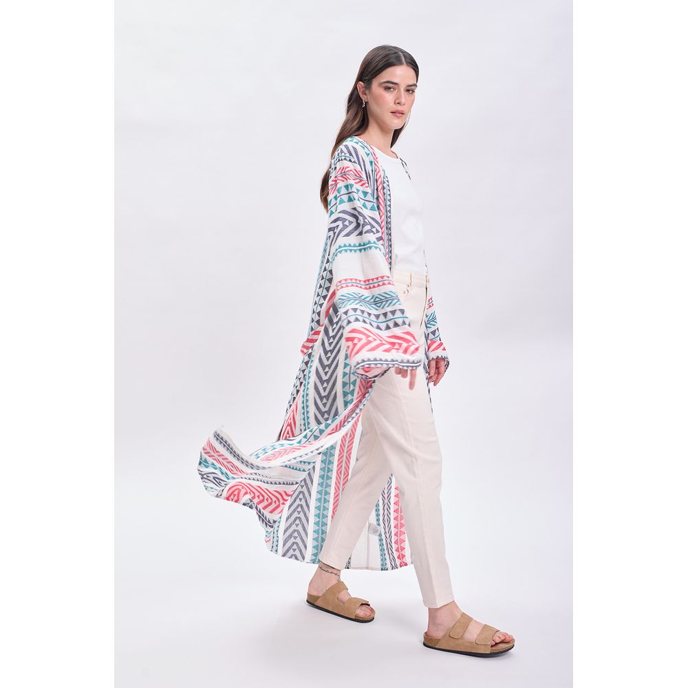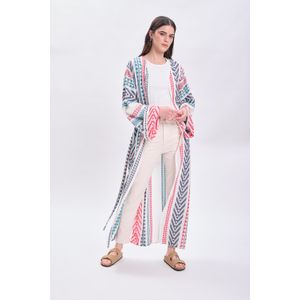 KAFTAN LARGO JACQUARD CON CINTURON BLANCO