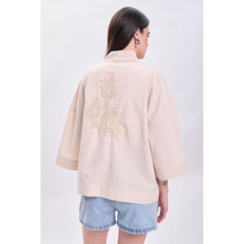 KAFTAN LARGO JACQUARD CON CINTURON BLANCO