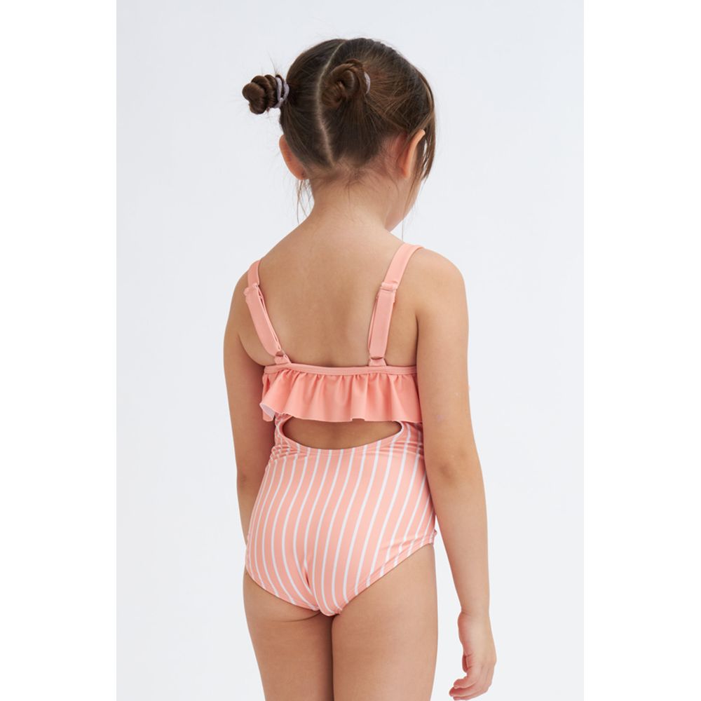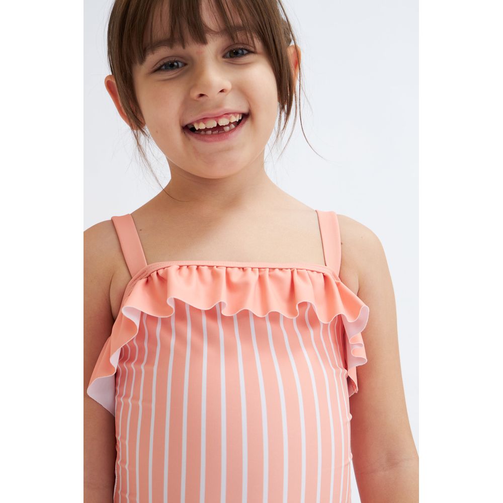 TOP BIKINI CON VOLADOS RAYAS CELESTE
