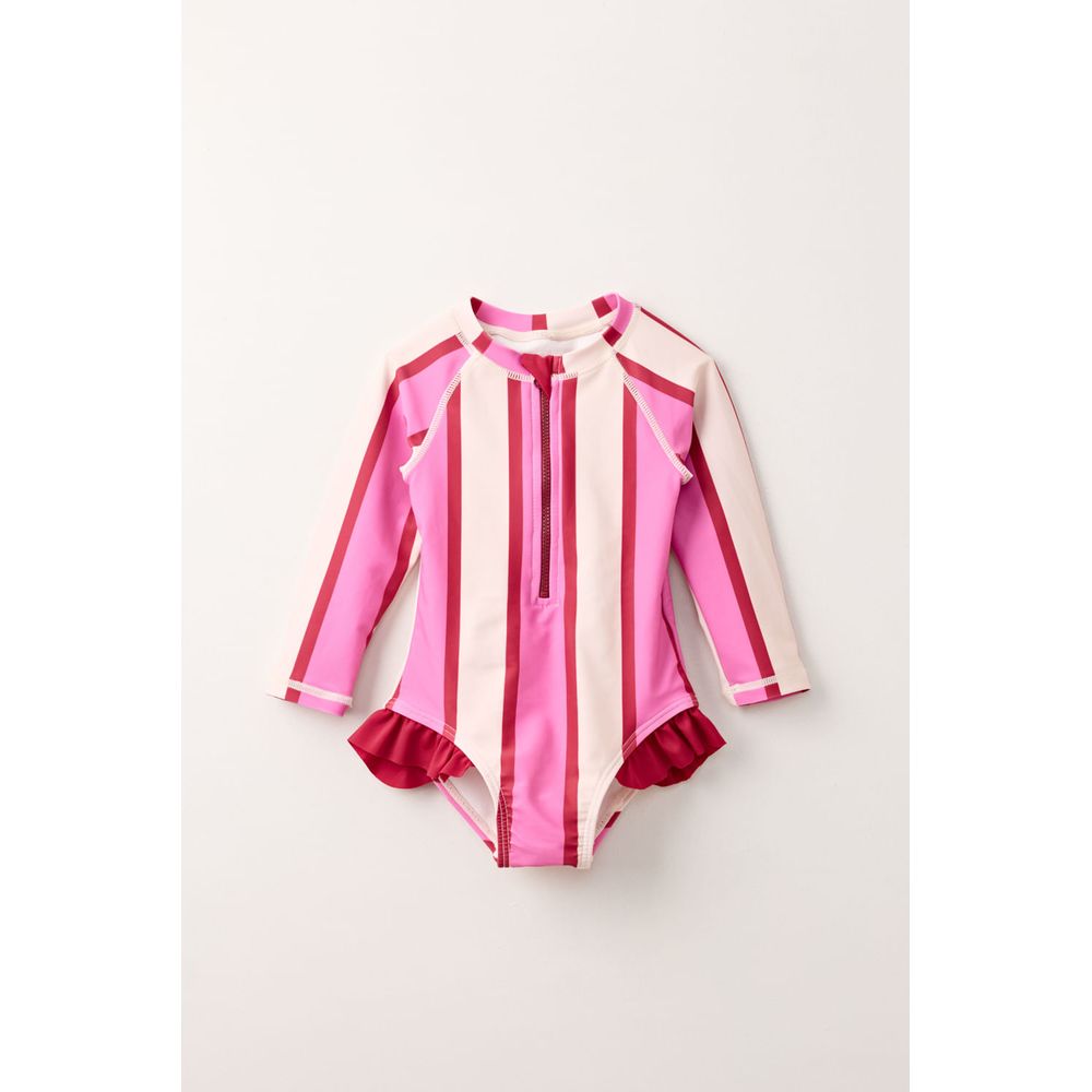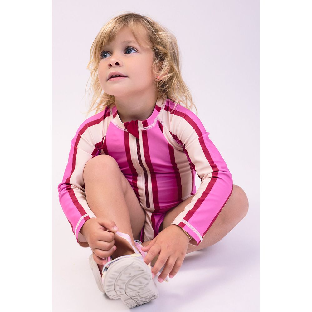 MALLA ENTERA MANGA LARGA UV ESTAMPADA RAYAS IRREGULARES BLANCO