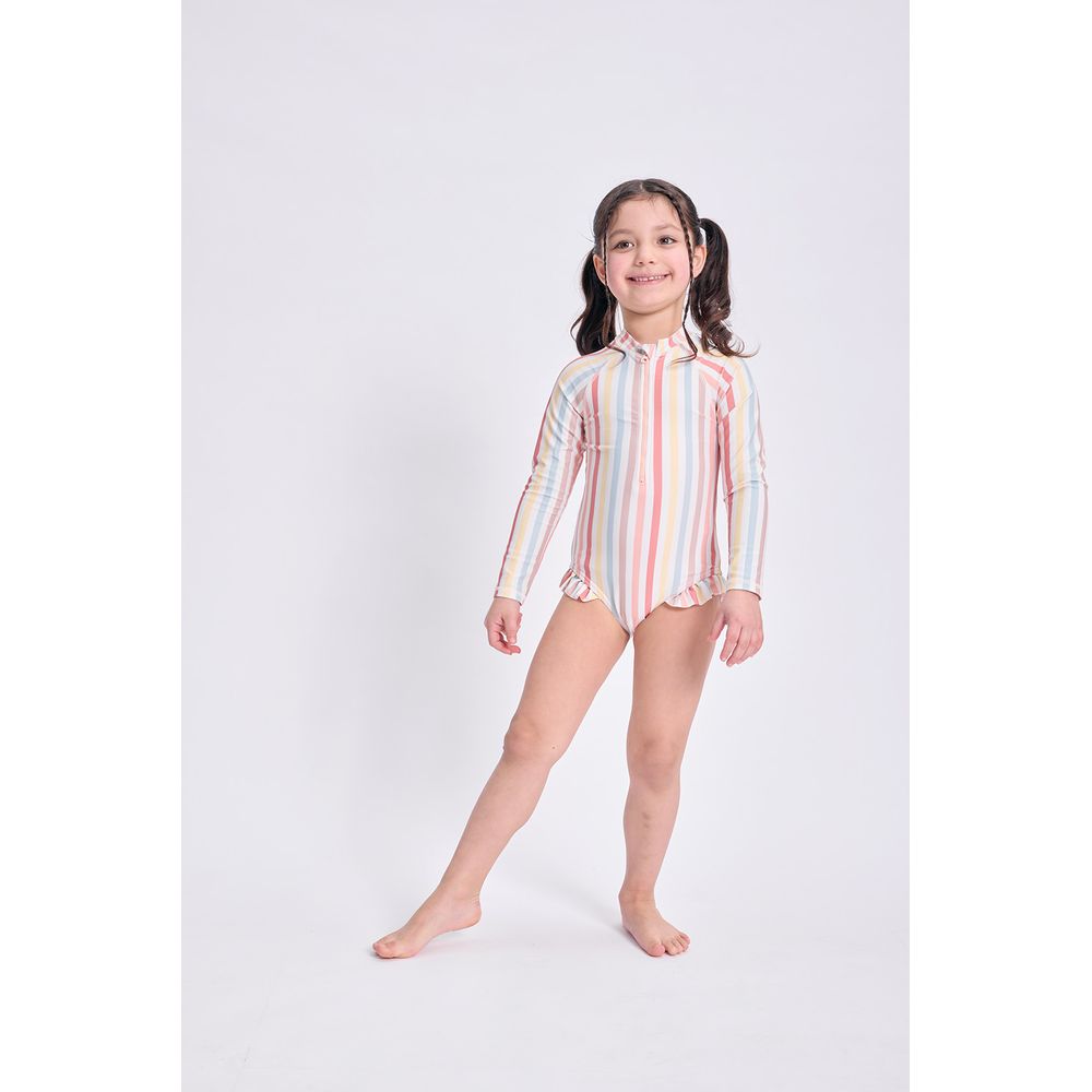 MALLA ENTERA MANGA LARGA UV ESTAMPA GIRASOLES CON SCRUNCHIE CRUDO