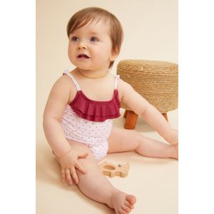 MALLA CON VOLADOS FLOREADA ROSA