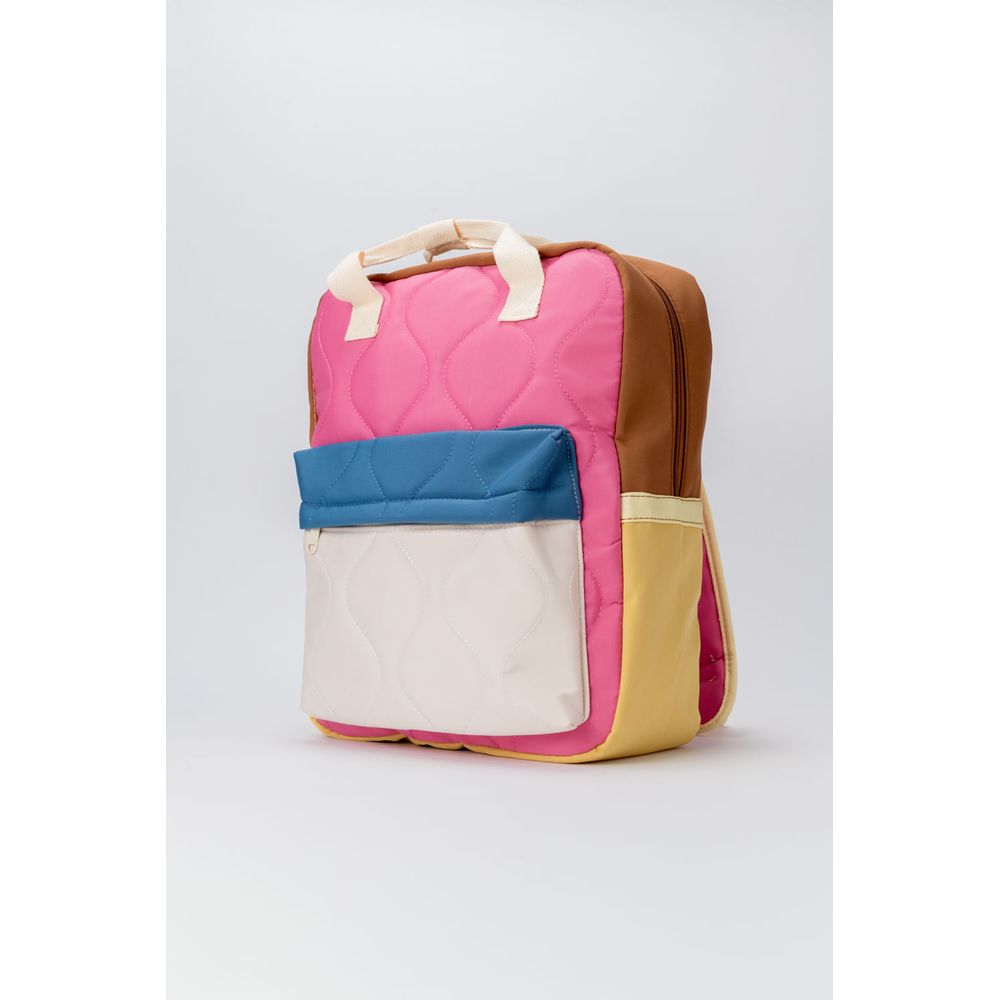MOCHILA CAPITONEADA COMBINADA FLOR ROSA