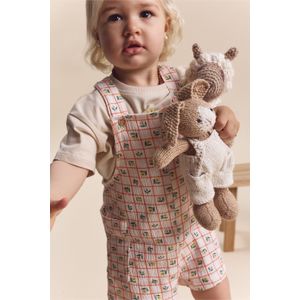 MONO CORTO CON ESTAMPA CUADROS Y FLORES EN COLOR CRUDO
