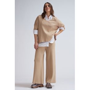 CAMISETA MANGA CORTA ESCOTE EN V TEJIDA BEIGE