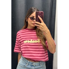 REMERA BASICA ESTAMPA RAYAS BONHEUR FUCSIA