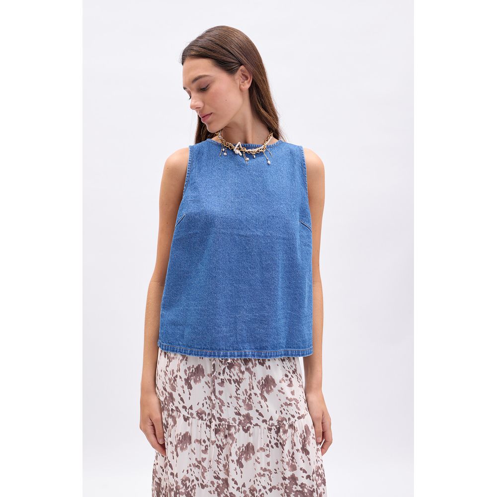 BLUSA SIN MANGAS CON LINO TOSTADO