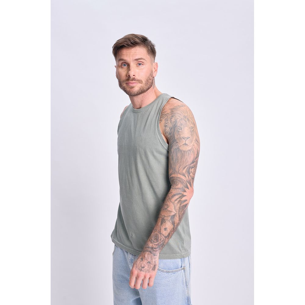 REMERA LAVADA CON BORDADO SOL VERDE MILITAR