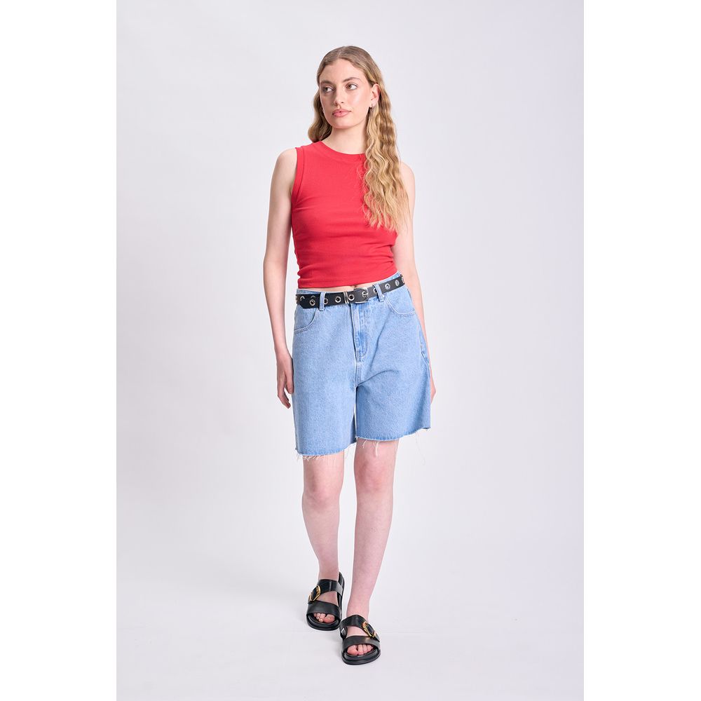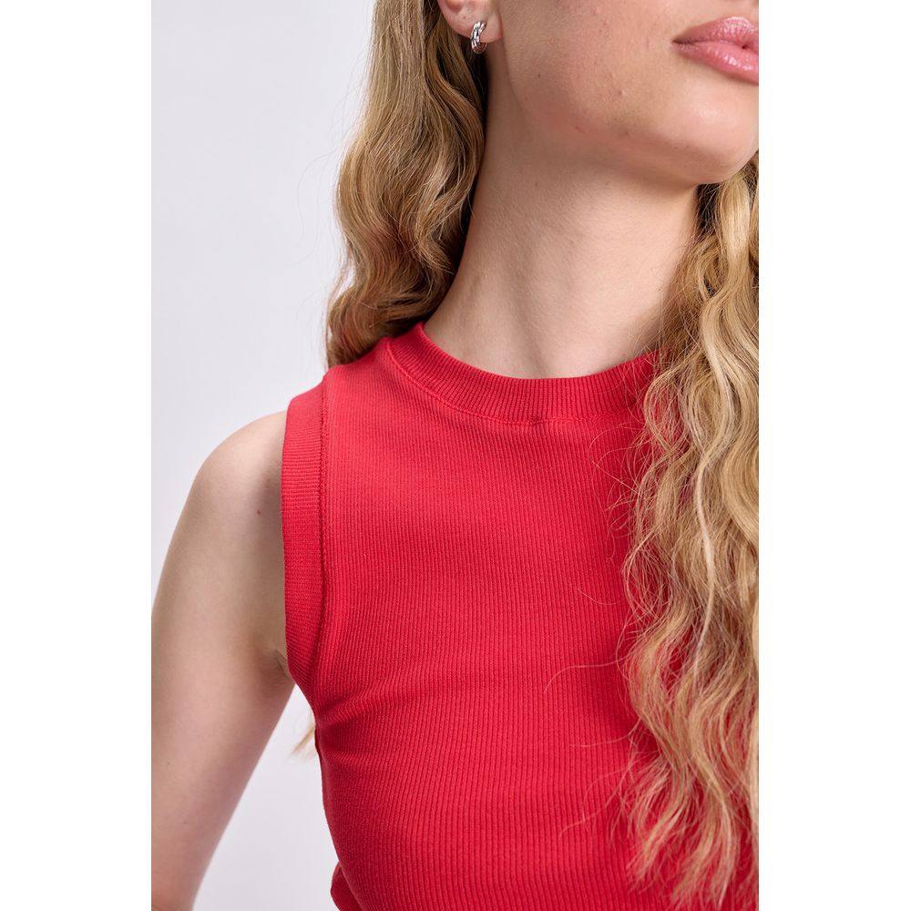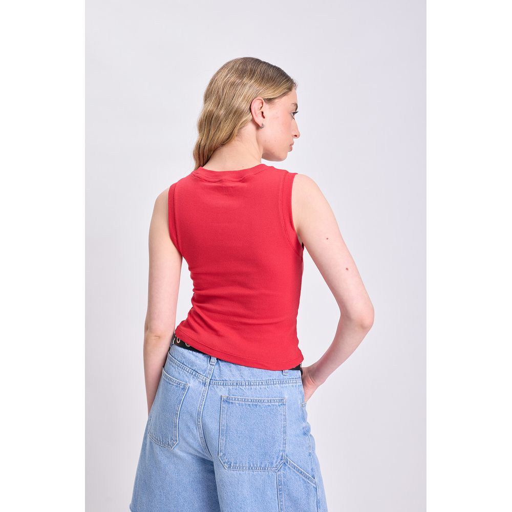 REMERA MANGA 3/4 CUELLO ALTO RAYADA ROJO
