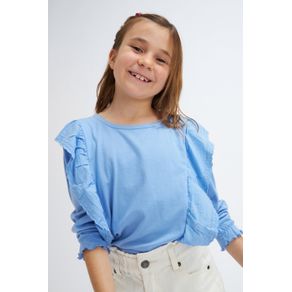 BLUSA MANGA LARGA CON VOLADOS CELESTE
