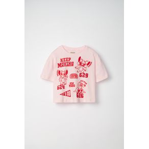 REMERA MANGA CORTA ESTAMPA STITCH ROSA