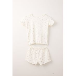 SET PIJAMA REMERA Y SHORT ESTAMPA FLORES BLANCO