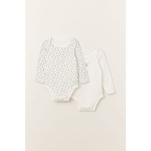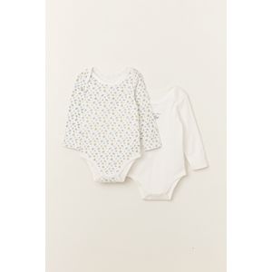 PACK X2 BODY MANGA LARGA ESTAMPADO FLORES BLANCO