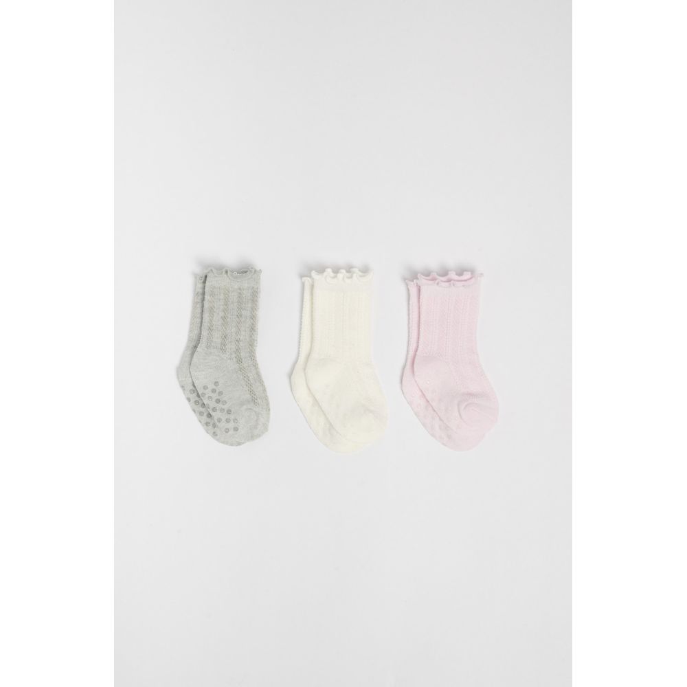 PACK X3 MEDIAS RIBETE BLANCO ROSA GRIS MELANGE:0/6m