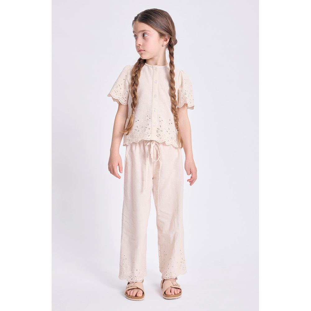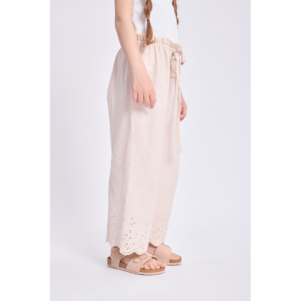 PANTALON CON BOLSILLOS Y CINTA DECORATIVA CELESTE