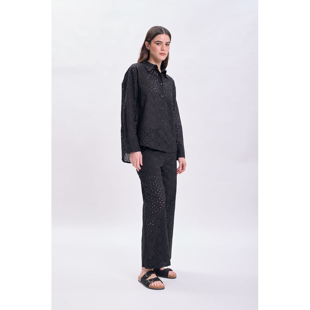 PANTALÓN DE VESTIR PINZADO NEGRO