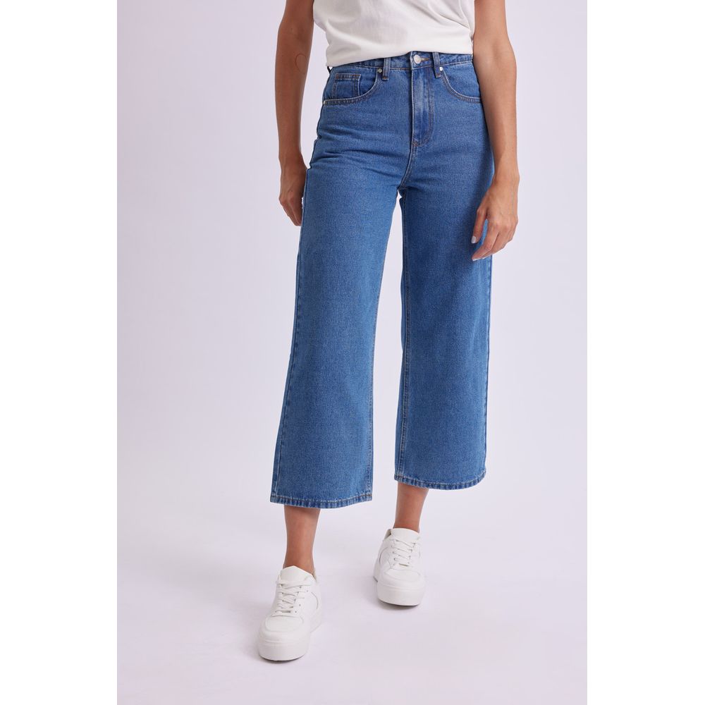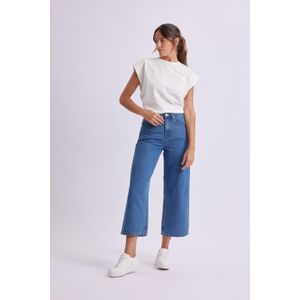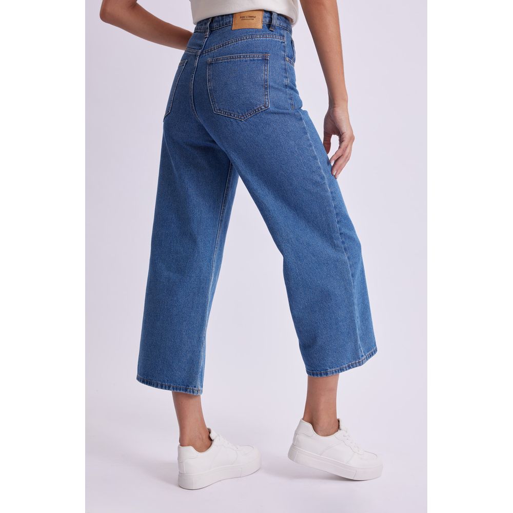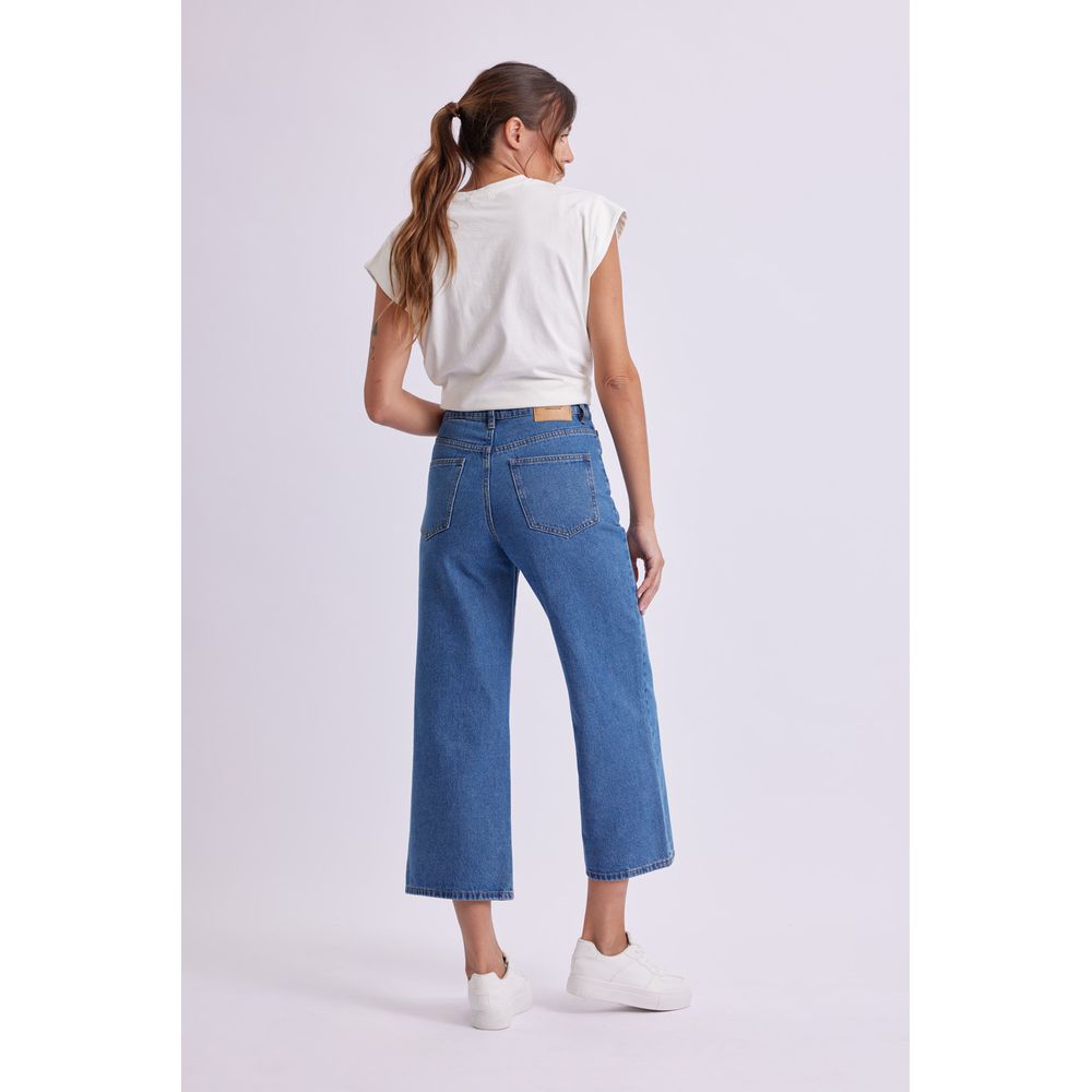 PANTALON JEAN CROPPED FLARE AZUL MEDIO