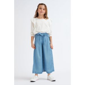 PANTALON JEAN WIDE LEG BORDADO LATERAL CELESTE