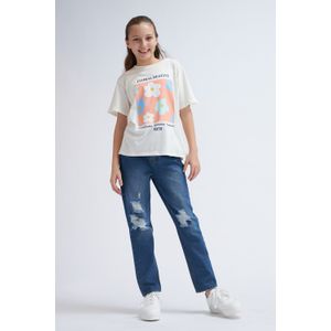 PANTALON DE JEAN MOM FIT ROTO CELESTE