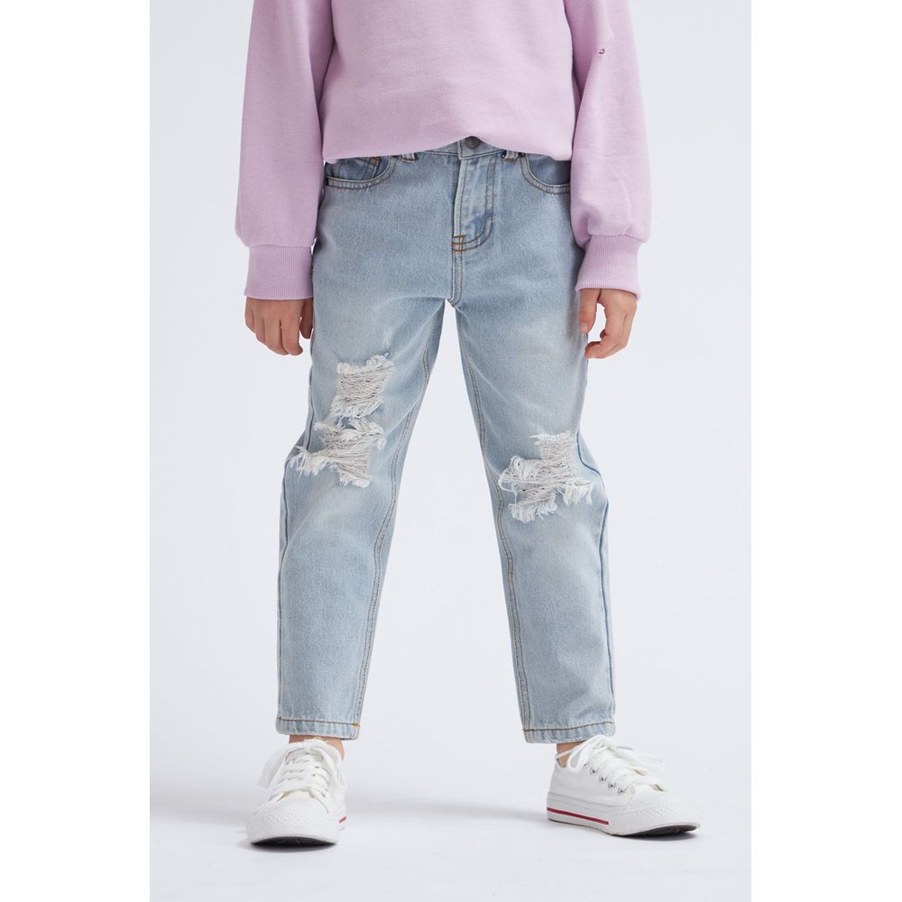 PANTALON DE JEAN MOM FIT ROTO CELESTE