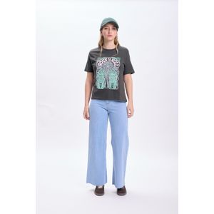 PANTALON JEAN CROPPED FLARE AZUL MEDIO