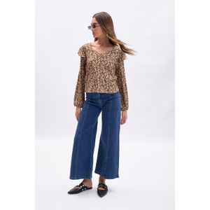 PANTALON JEAN ANCHO ESTAMPA SERPIENTE BEIGE