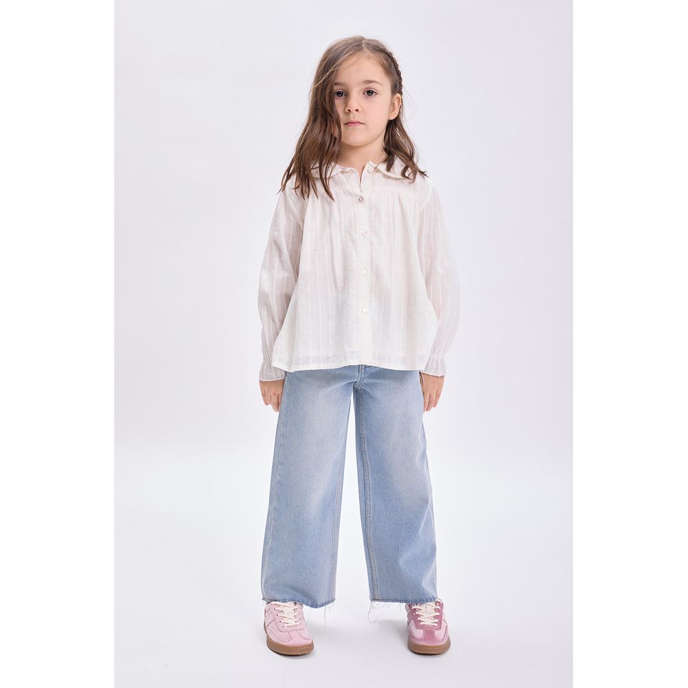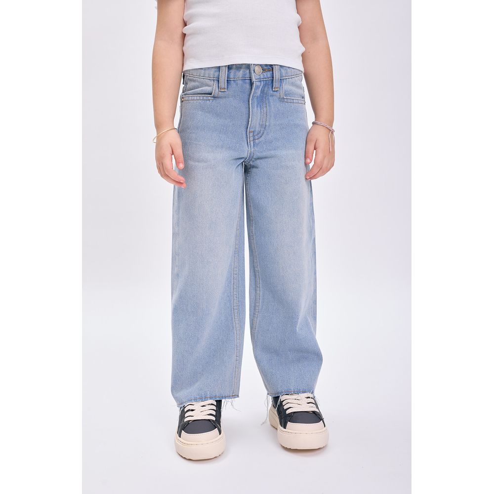 PANTALON JEAN WIDE LEG BORDADO LATERAL CELESTE