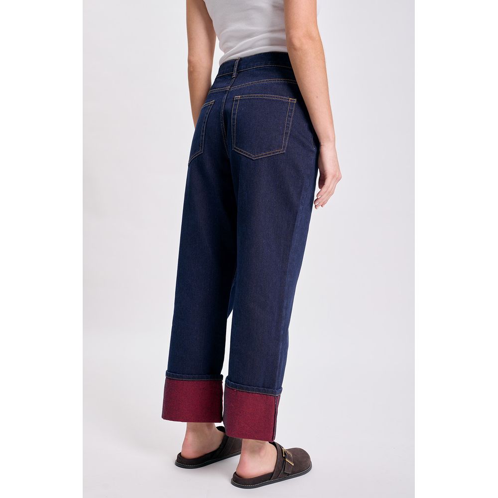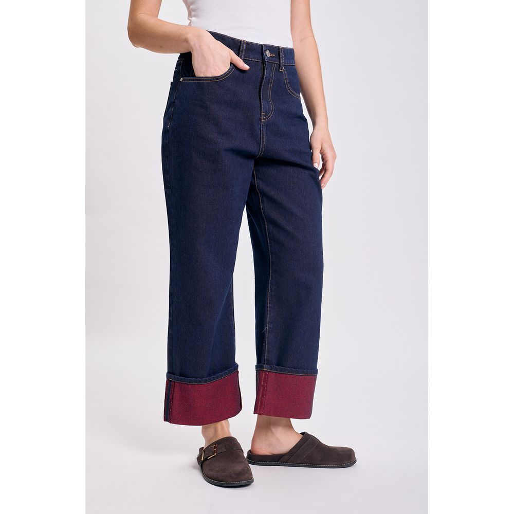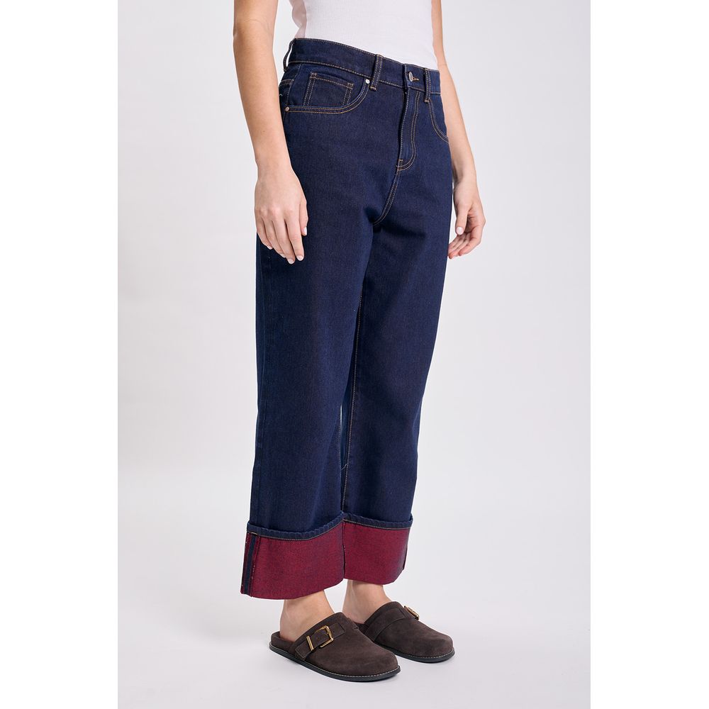PANTALON JEAN BAJO DOBLADO AZUL OSCURO