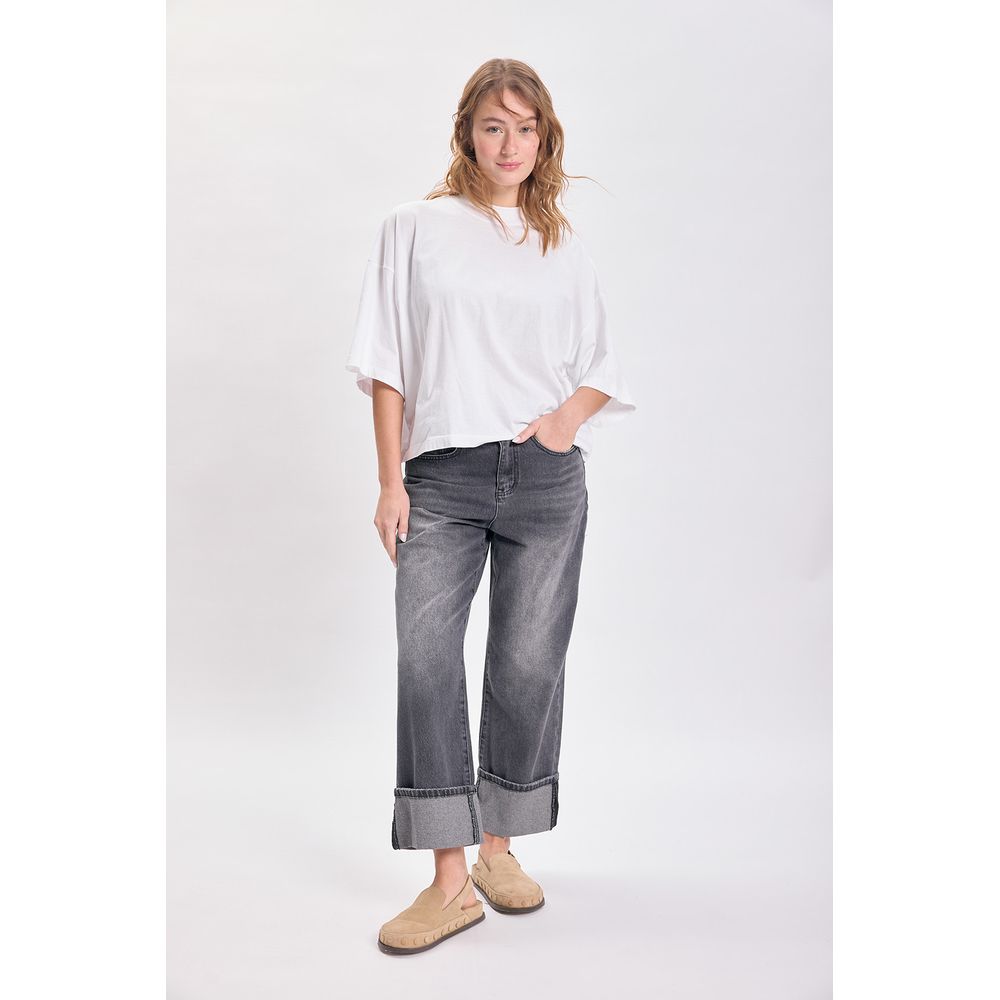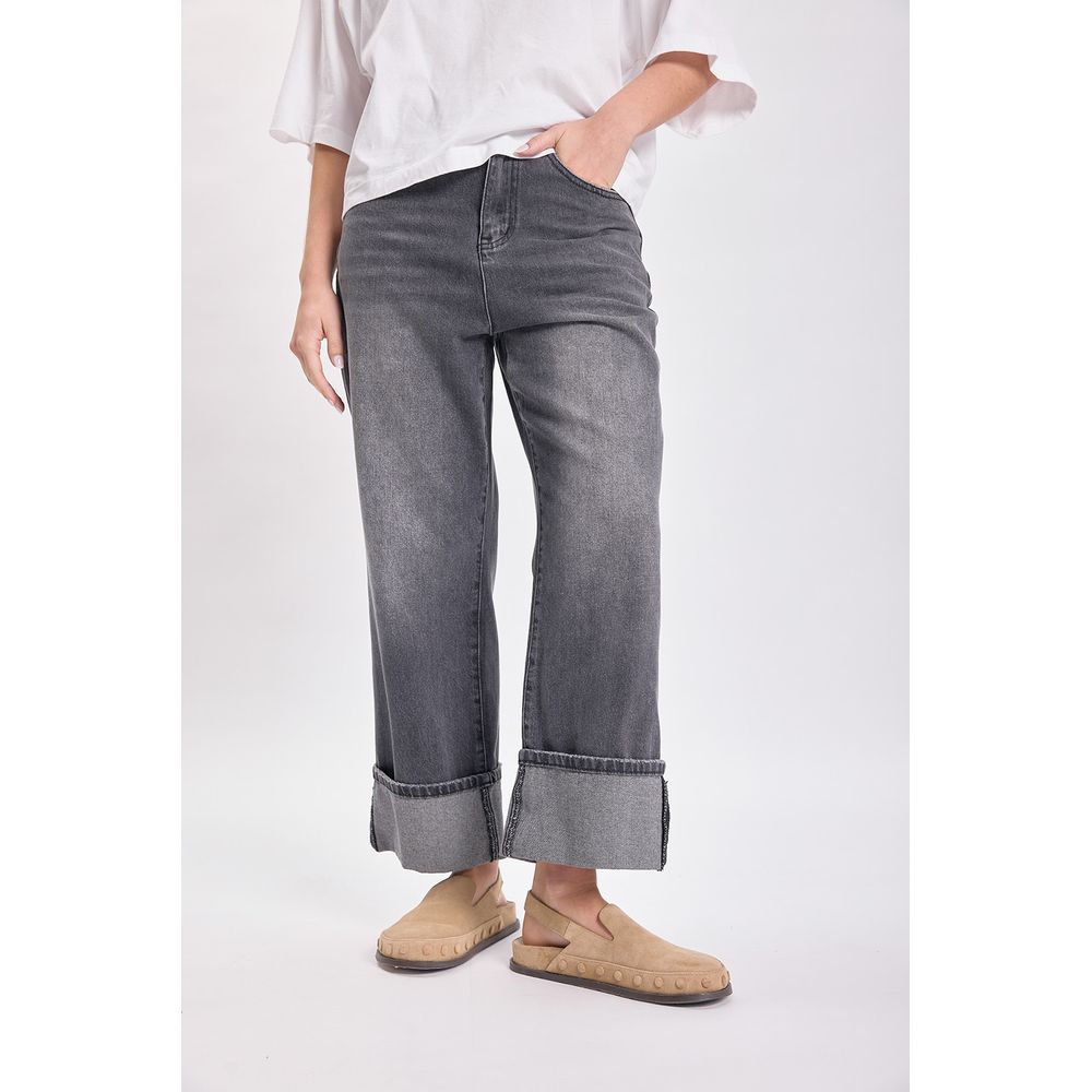 PANTALON JEAN BAJO DOBLADO NEGRO