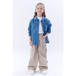PANTALON JEAN PAPER BAG ESTAMPADO ESTRELLAS AZUL MEDIO
