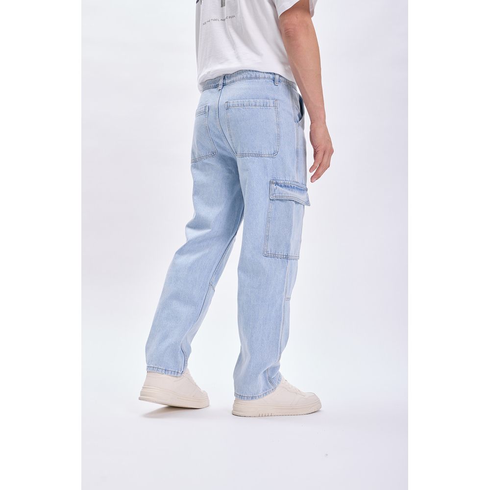 PANTALON JEAN CARGO RECTO AZUL CLARO