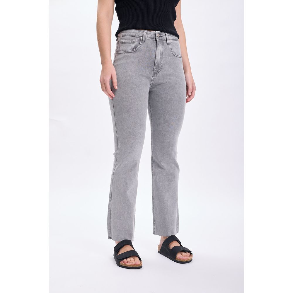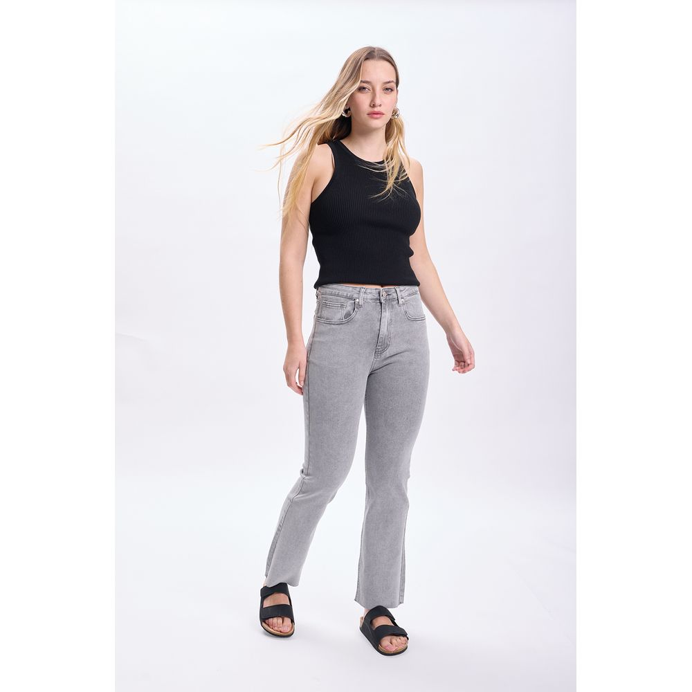 PANTALON JEAN CROPPED FLARE GRIS CLARO