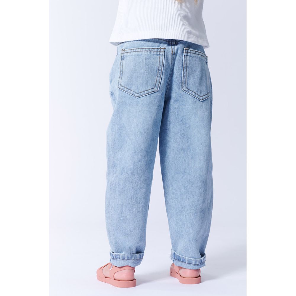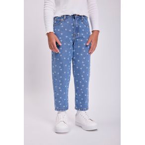 PANTALON JEAN PAPER BAG ESTAMPADO ESTRELLAS AZUL MEDIO
