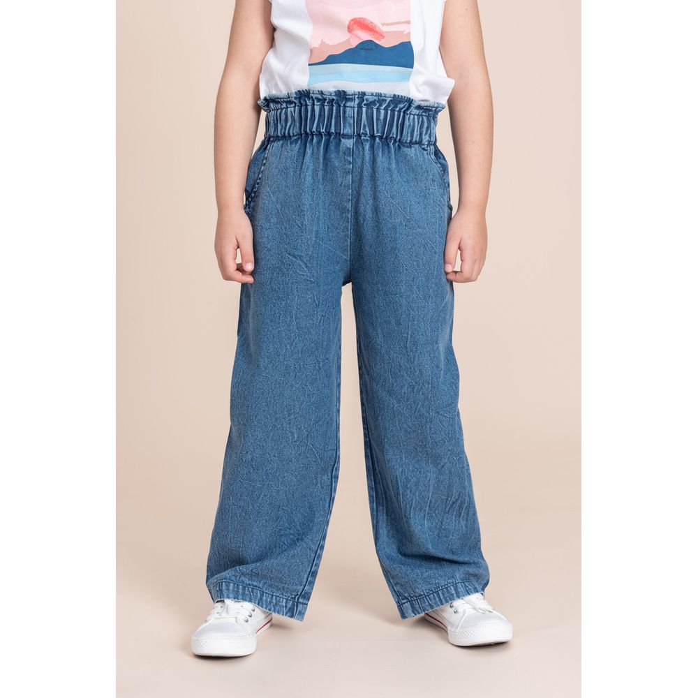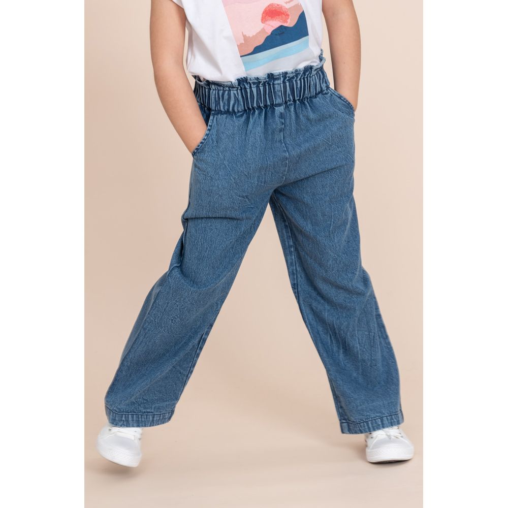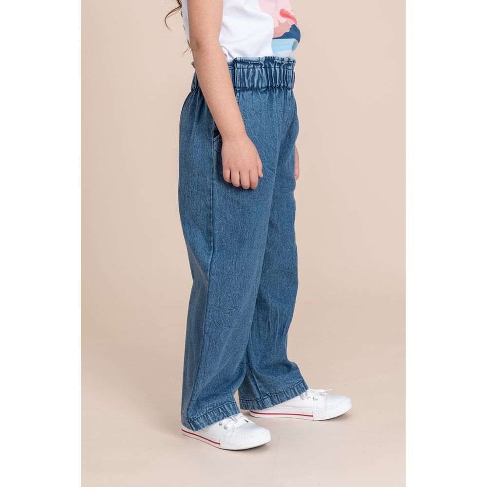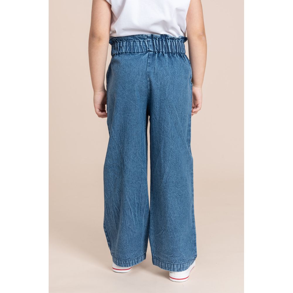 PANTALON CON BOLSILLOS Y CINTA DECORATIVA CELESTE