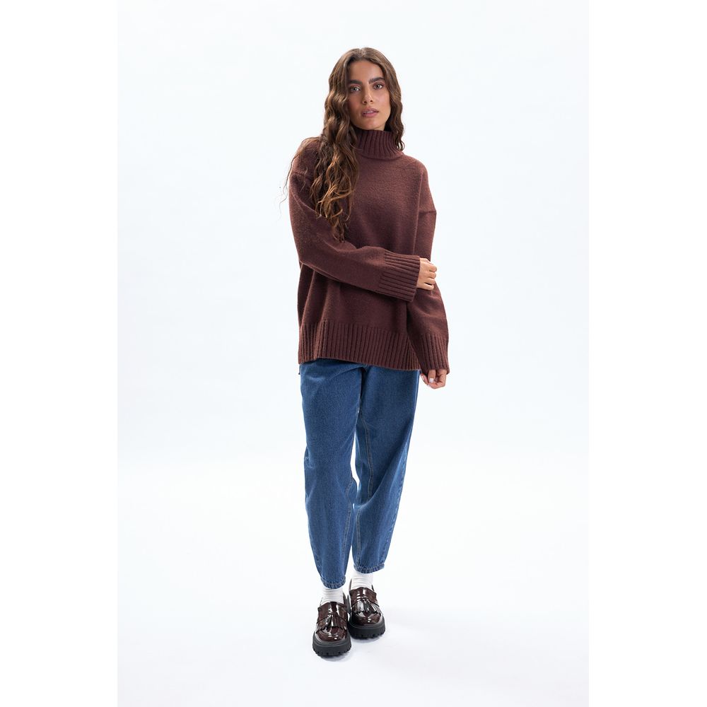 POLERA DE PUNTO CON ABERTURAS LATERALES MARRÓN
