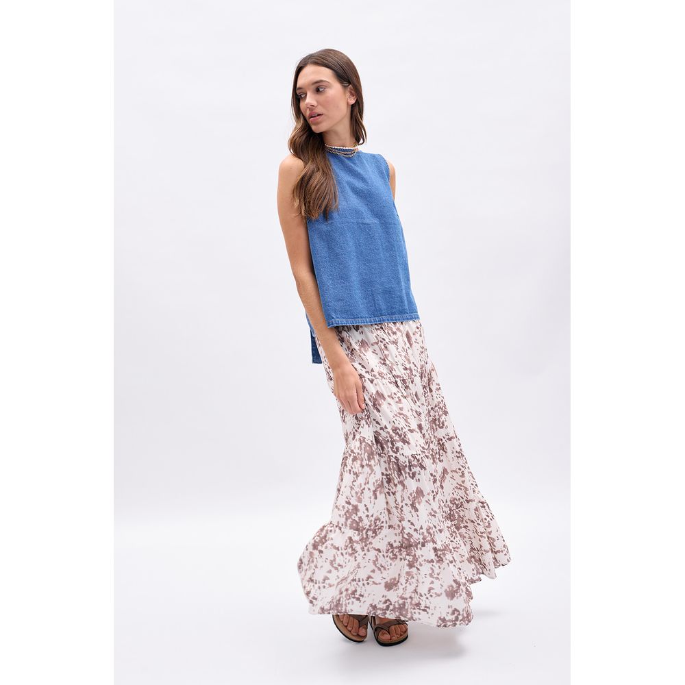 POLLERA LARGA PANELES ESTAMPADA CRUDO