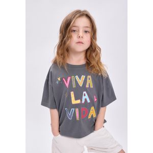 REMERA MANGA CORTA ESTAMPA SHINY MOOD GRIS OSCURO
