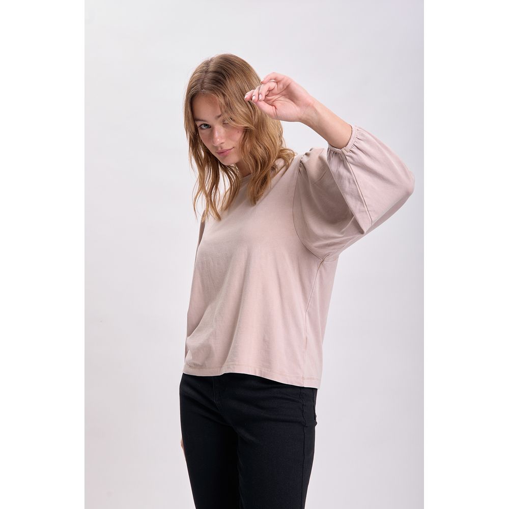 REMERA MANGA CORTA APLIQUES BEIGE