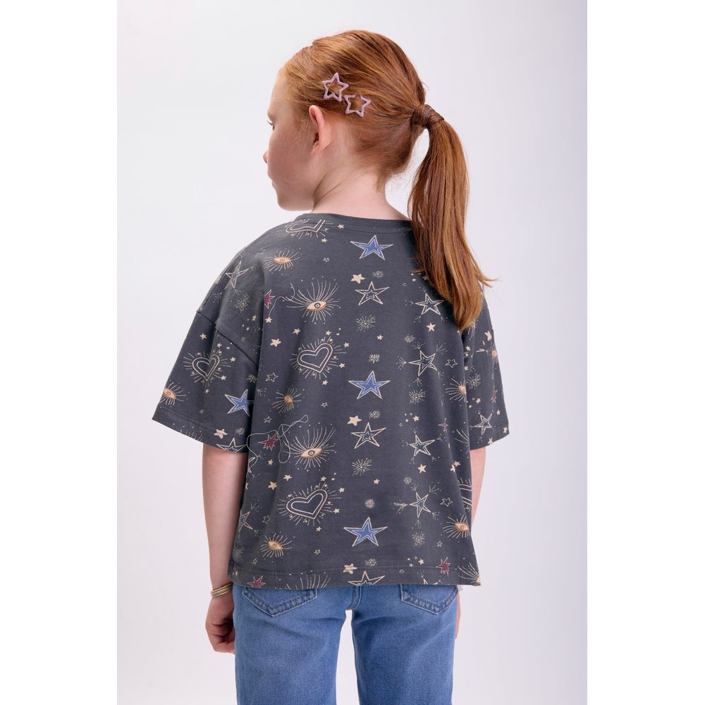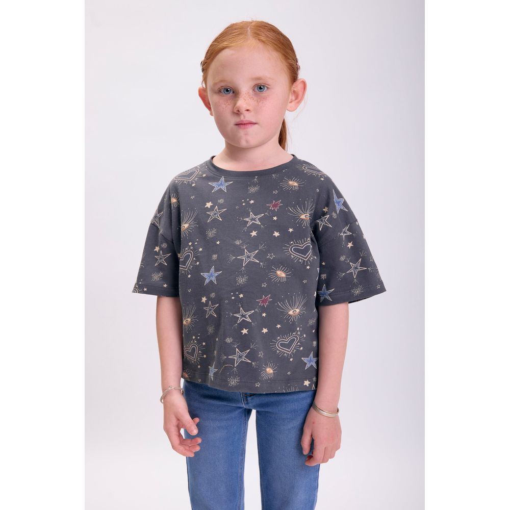 REMERA MANGA CORTA ESTAMPA SHINY MOOD GRIS OSCURO