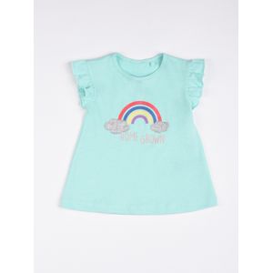 REMERA MANGA CORTA ESTAMPA STITCH TROPICAL CELESTE