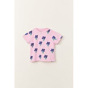 REMERA MANGA CORTA ESTAMPA FLORES ROSA