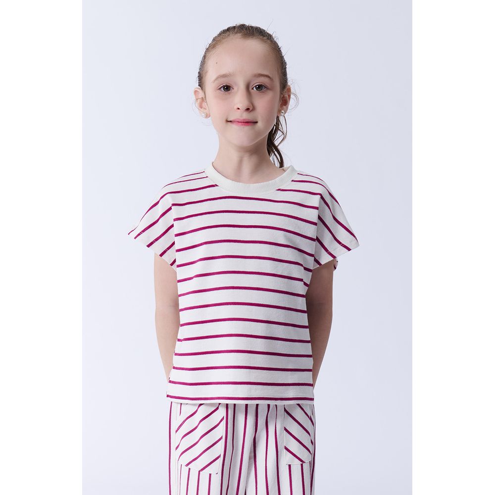 REMERA MANGA CORTA ESTAMPA RAYAS BONJOUR ROSA