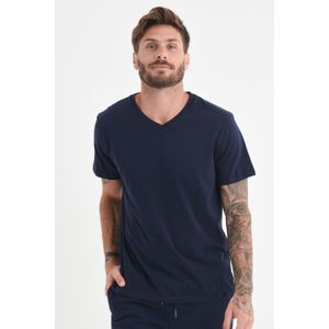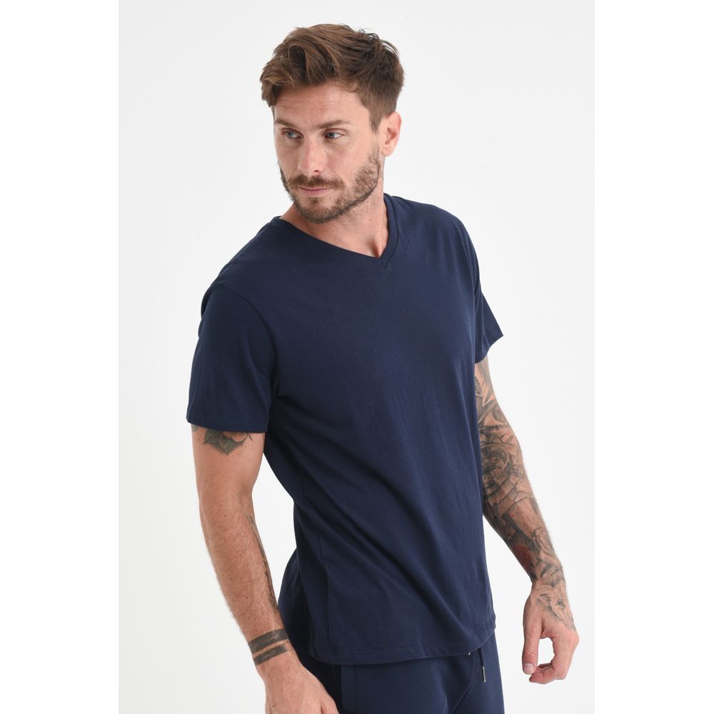 REMERA MANGA CORTA CUELLO EN V AZUL MARINO