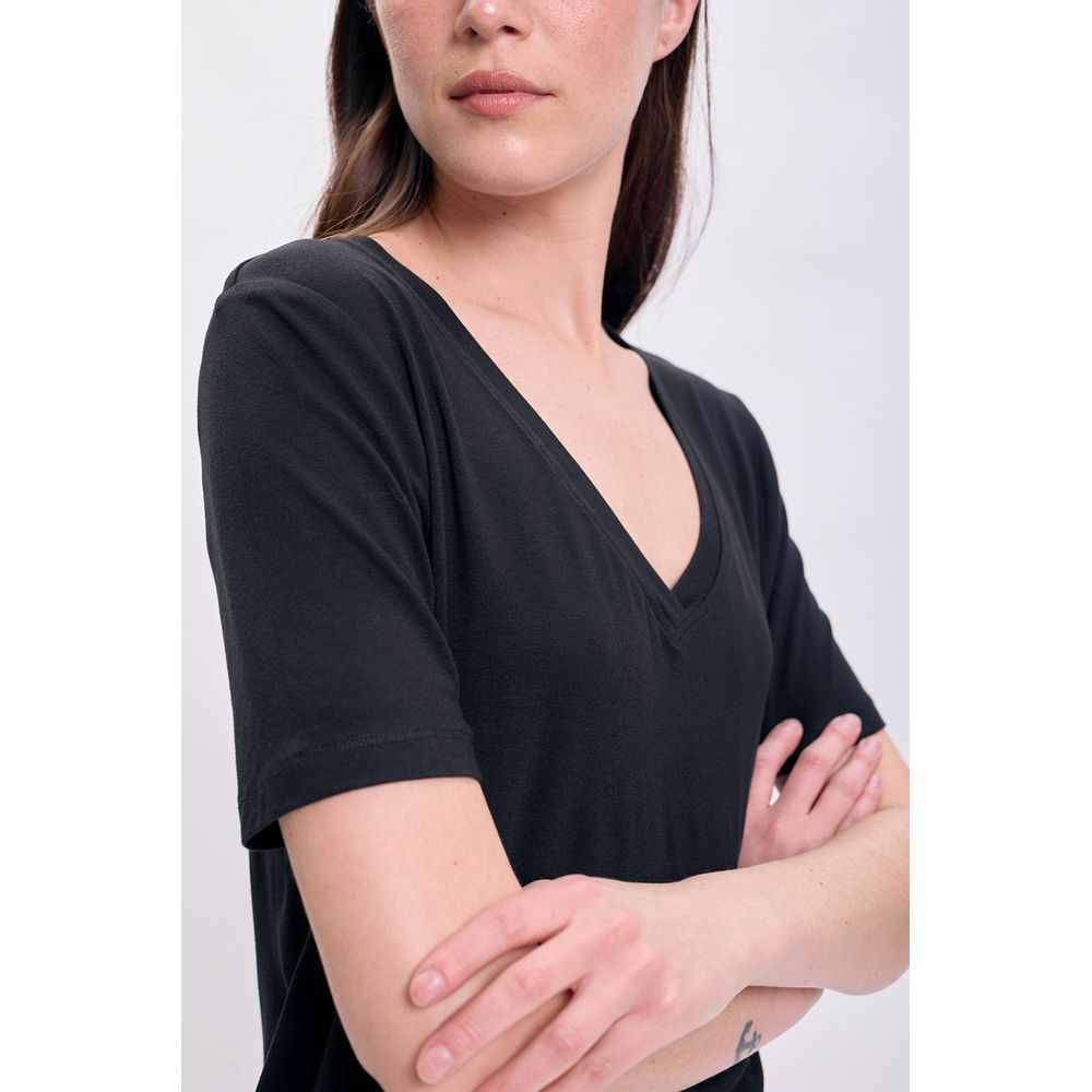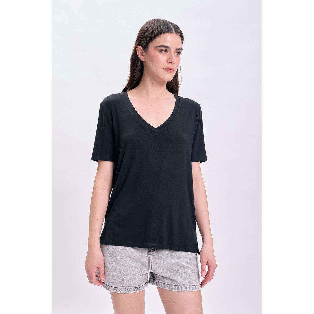 REMERA MANGA CORTA ESCOTE EN V NEGRO